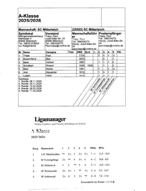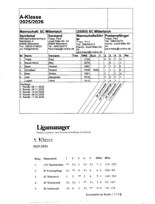 Schachclub Mitterteich wird in der Kreisklasse Markt-